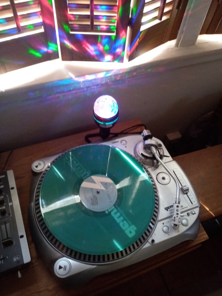 Lady Gaga vinyl record on the turntable. One I listen to once in a while.