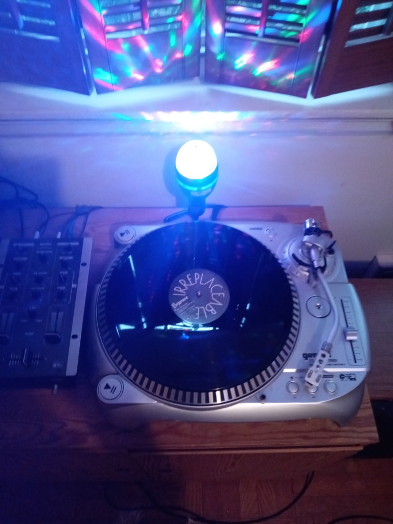 Picture: Beyonce’s 12″ “Irreplaceable” remixes on the turntable. This 12″ remix record was released in 2006. A classic early 2000s vinyl record released by Beyonce.